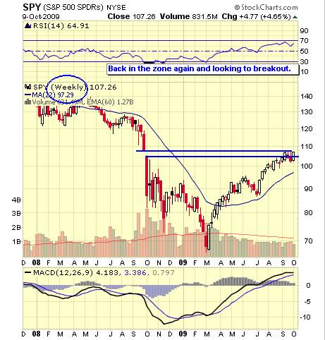 !Aren't charts wonderful? The first one is a daily chart of the DOW. The second one is the weekly.